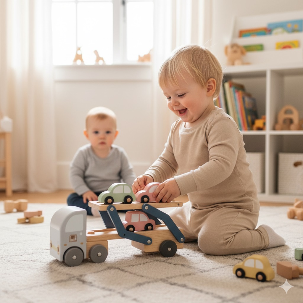 This wooden transporter lorry is versatile enough for solo play or group activities. It’s an excellent toy for playdates, allowing children to collaborate and share their imaginative ideas. The lorry can easily accommodate multiple small toys, making it a fantastic tool for social interaction and cooperative play. Watch as your child engages with friends, sharing their stories and creating new adventures together.
