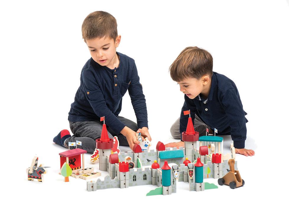 This set of wooden modular castle components is sustainably crafted from rubberwood and plywood and features charming illustrations. The two kingdoms are perfect for playing out mediaeval battles, while the beautiful Red Dragon will help keep everything in check! Let their imaginations run wild as they create a world of adventure with this incredible set. Plan battles against enemies or have fun playing knights with friends. You can even transform the castle into something completely different each time you play.